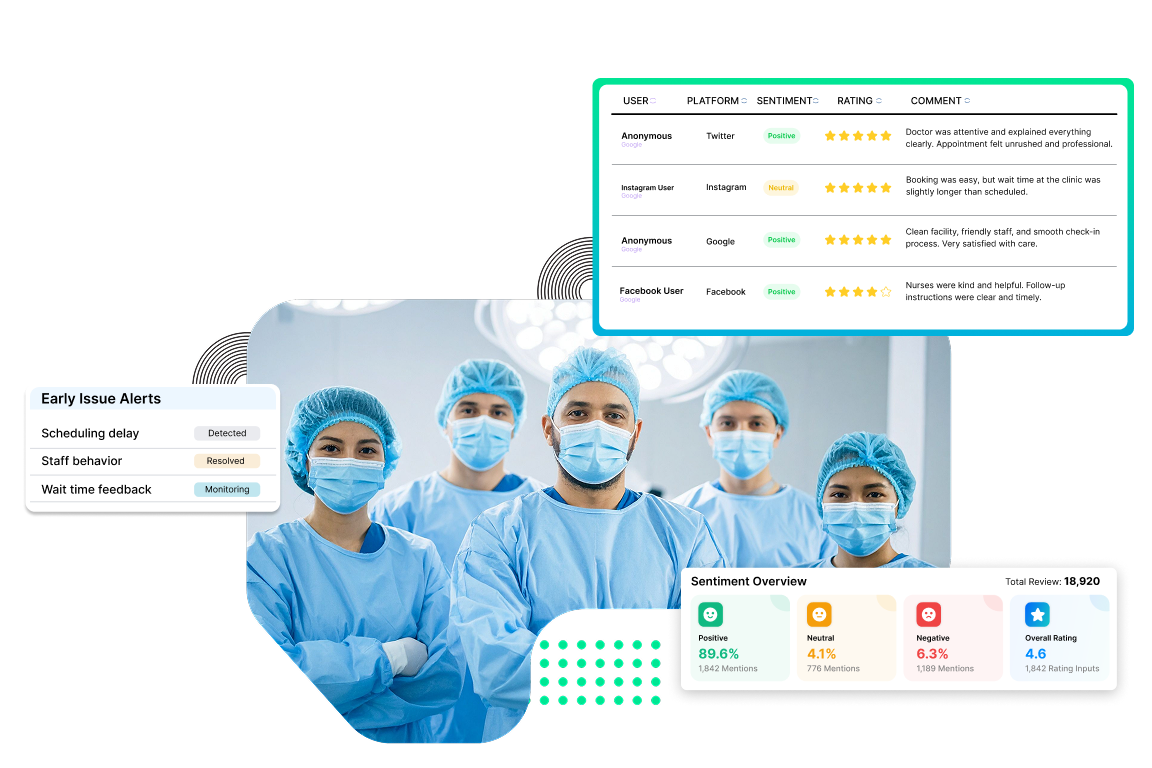 Clariv cuts down the time teams spend bouncing between Google reviews, patient portals, surveys, and social media messages. Instead of hunting for scattered feedback, care teams can focus on improving service quality & patient satisfaction.
