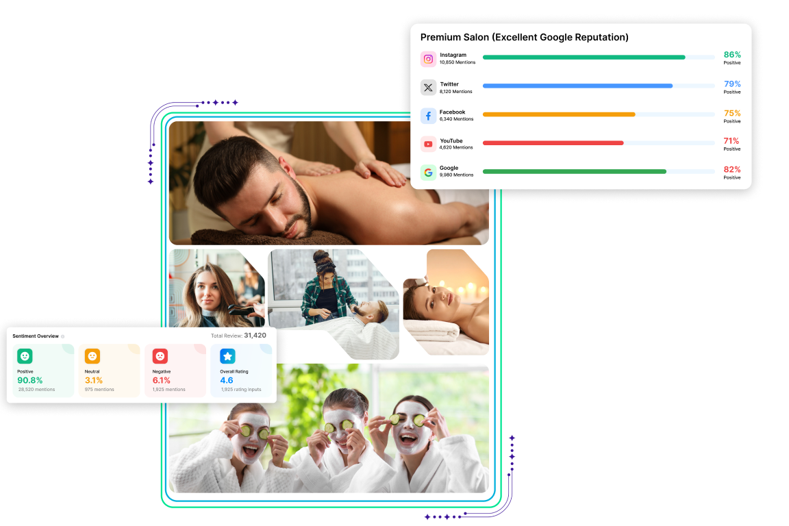 Clariv monitors Google, Yelp, booking platforms, and social sentiment with absolute ease. So, salon and spa owners can understand the problems early and take proactive decisions to protect their business reputation.